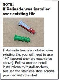 Although Palisade tiles are 100% waterproof, we recommend the use of a siliconized sealer like DAP® or SilTex in the seams for added protection. Follow your local building codes for wet environments like shower and tub enclosures. We recommend a 100% waterproof substrate that will prevent water from getting behind potentially unsealed areas that would cause mold or other damage.