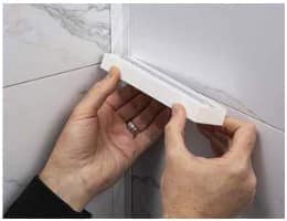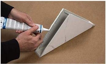 After you have applied the adhesive, place a small bead of sealant along the edges that will go against the shower wall.