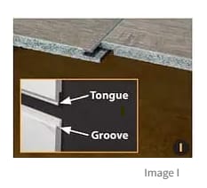 Insert the cut tile edge into the L-trim while holding the interlocking joint-edge away from its mating tile. Insert the cut end into the edge of trim channel while holding other edge up (image 22).