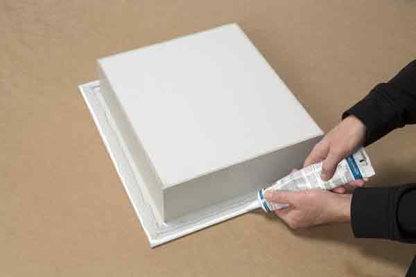 Place a small bead of sealant close to the outside edge. Apply it around the entire perimeter.