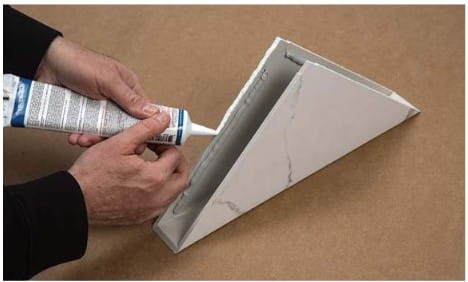 Before installing the shelf, place a bead of adhesive on both inside edges of the shelf. Placing adhesive here will help eliminate glue pushing out onto the outside surfaces of the shelf.