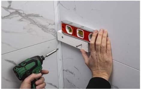 After you have applied the adhesive, place a small bead of sealant along the edges that will go against the shower wall.
